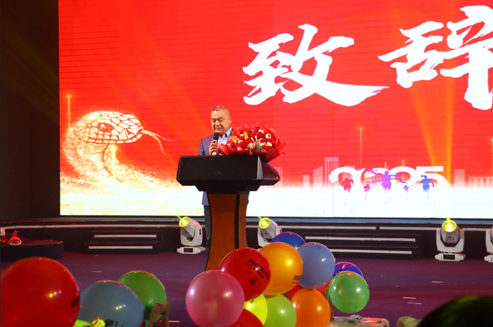 在热烈的掌声中,董事长杨利民上台致辞。
